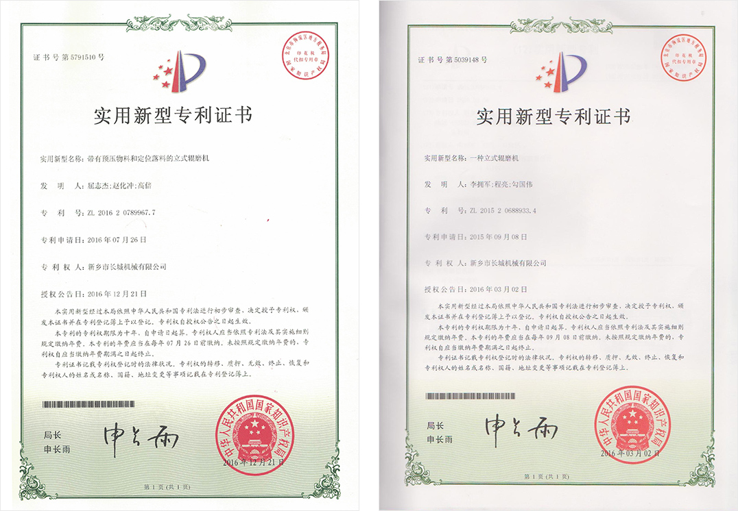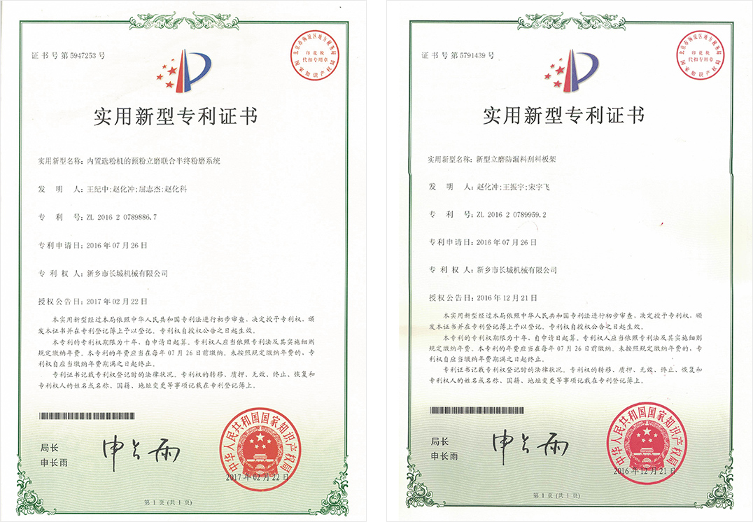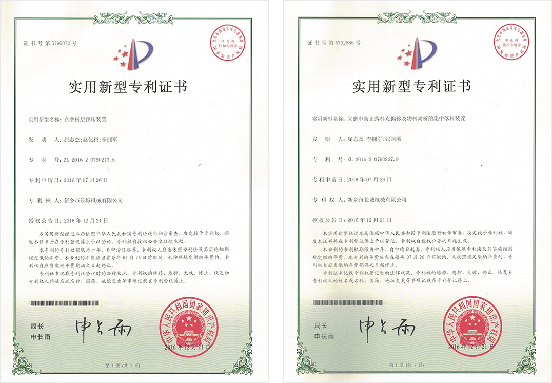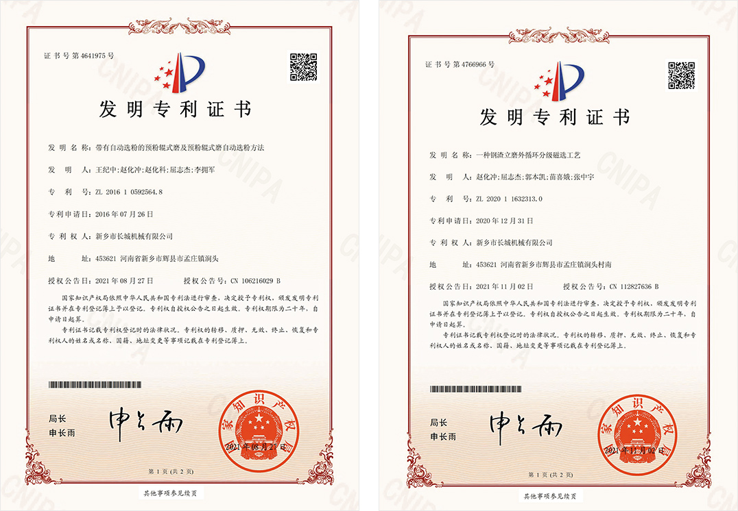 新鄉(xiāng)長城憑借豐富的生產(chǎn)經(jīng)驗(yàn)、先進(jìn)的生產(chǎn)工藝和科學(xué)的管理體系,推動(dòng)企業(yè)管理和技術(shù)創(chuàng)新,公司取得了發(fā)明專利2項(xiàng),實(shí)用新型專利100余項(xiàng),軟著權(quán)4項(xiàng),60余年品牌知名度和美譽(yù)度不斷提升,礦渣立磨市場占有率穩(wěn)居前列。